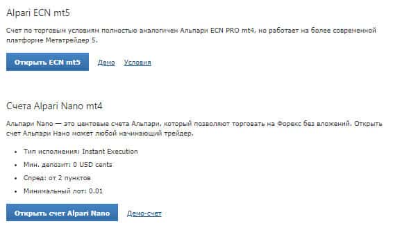 Как можно заметить, мошенники не собираются заканчивать клепать счета, с помощью которых можно набрать побольше денежных сумм. На данной картинке изображено два счёта: Alpari ECN mt5, который аналогичен с ранее рассматриваемым счётом ENC PRO mt4. И последний счёт Alpari Nano mt4, который, по словам шулеров, является центровым счётом.