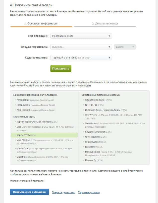 Вот и продолжение всего того, что Вам придется сделать при открытии счёта в конторе Альпари. Сейчас самое важное для всех: пополнение счёта, с которого Вы будете работать с данной мошеннической организацией. С самого начала, как только Вы смотрите на всё это, возникает чувство кидалова, которое не покидает Вас на протяжении длительного времени.