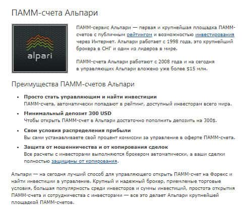 Листая далее, мы снова натыкаемся на контору Альпари, которую шулера из организации PamMin обожествляют. Видно, контора не мало им заплатила, дабы заполучить свой пиар и своих потенциальных клиентов. Кроме того, открыт ПАММ-счёт конторы Alpari, в котором Вы тоже можете работать и сливать большие суммы денег не выходя из дома, прямо на диване.