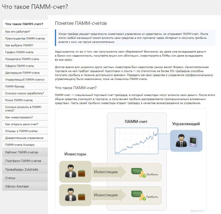 Мошенническая контора PamMin рассказывает что такое ПАММ-счёт на своём сайте