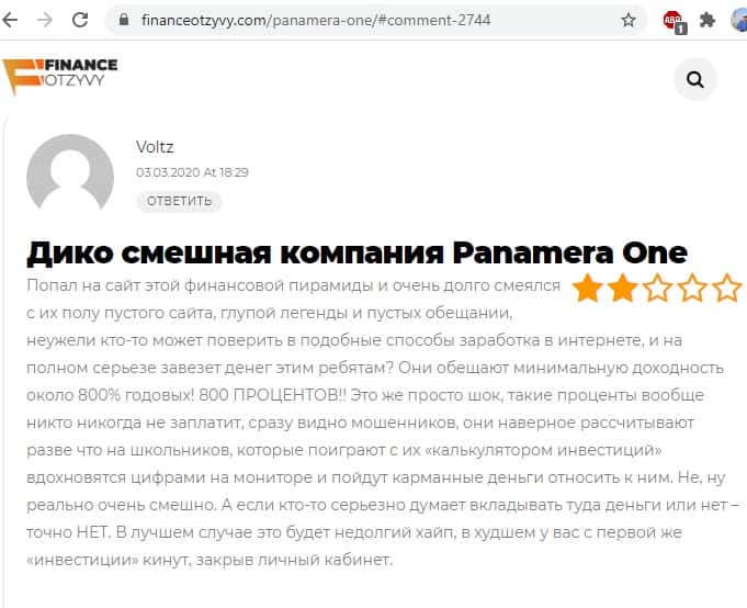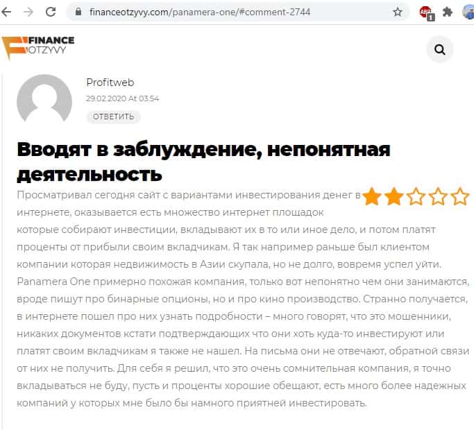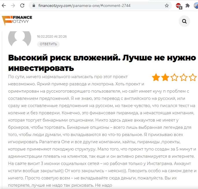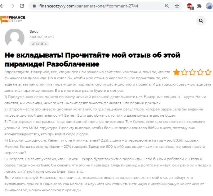 - Инвестиционная платформа Panamera One - очень сомнительная и непонятная компания