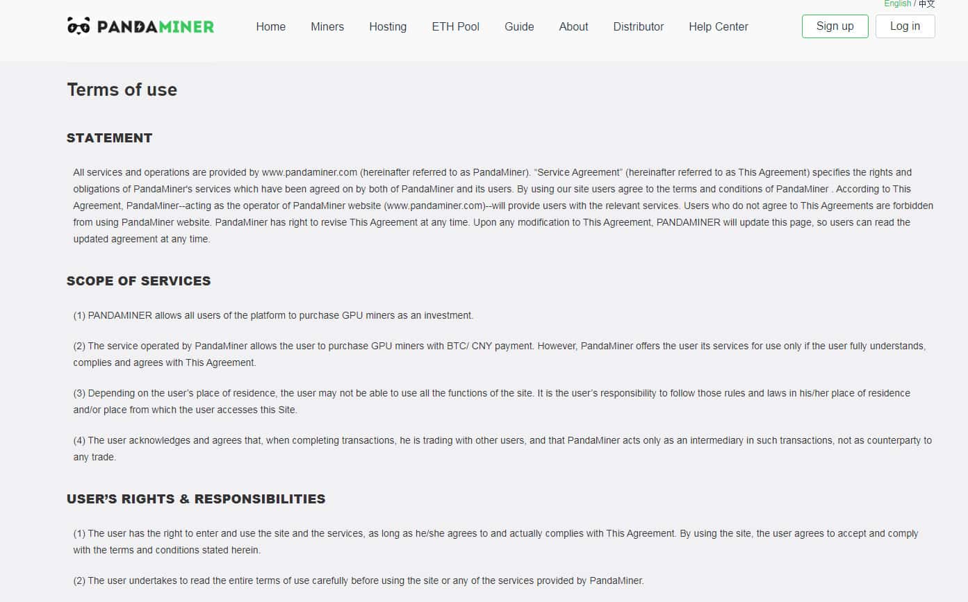 Касательно какого-либо разрешения на ведение деятельности лохотрона PandaMiner, контора не предоставила, поэтому можем считать, что она работает вне закона и несет опасность для окружения. Ниже представлен перевод раздела официального сайта кухни Панда Майнер и их пустые обещания.