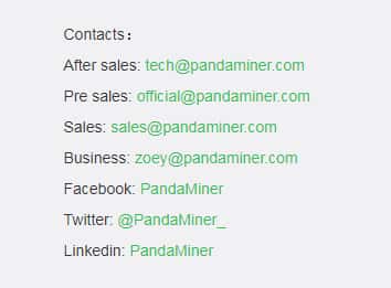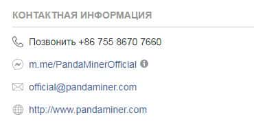 Чтобы можно было хоть как-то связаться с кухней Панда Майнер, после того как они украдут у вас деньги, далее мы представим некоторые контактные данные. С одной стороны это может успокаивать, а вот с другой, как показывает практика, мошенники после совершенной покупки клиентом обычно на связь не выходят.