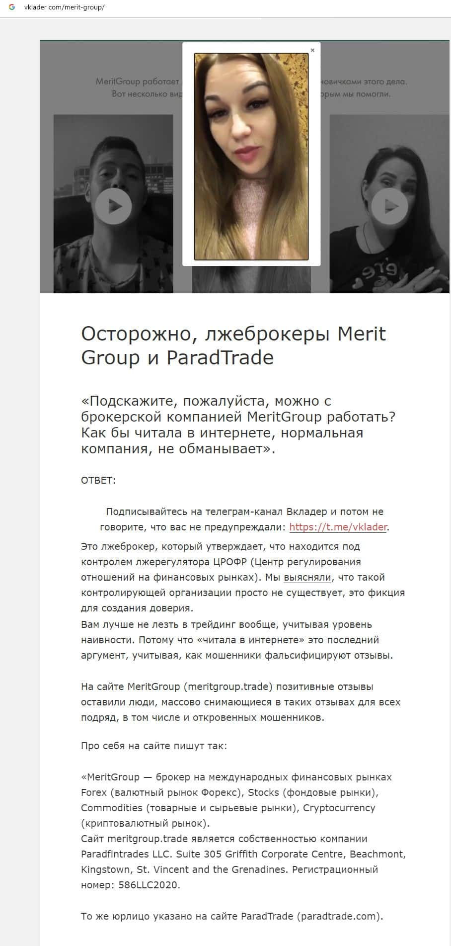 Согласно информации найденной в обзоре предоставленном ниже Парад Трейд действует сообща с жуликами Merit Group, юридическое лицо на сайтах компаний указано одинаковое.