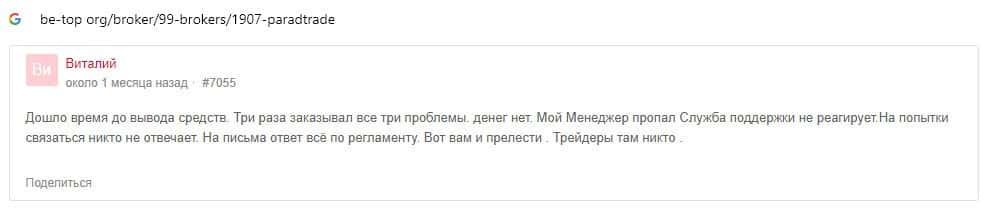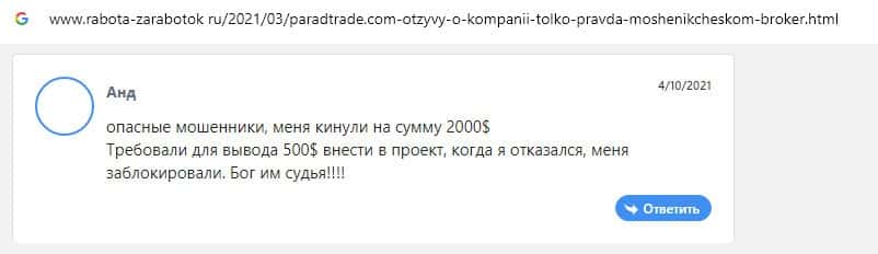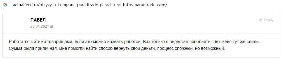 - Отзывы о скам-проекте Parad Trade, ныне присутствующие в интернет-сети