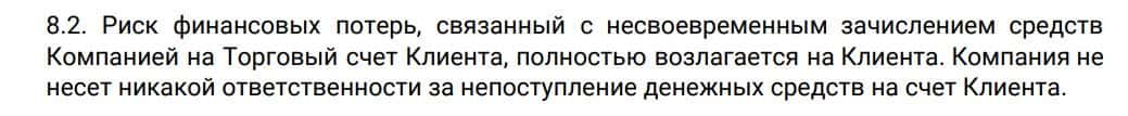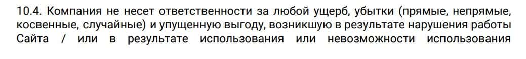 Согласно тому, что аферисты пишут в соглашении, компания Парад Трейд не несет никакой ответственности за не полученную прибыль клиентом, а также за возможные убытки.