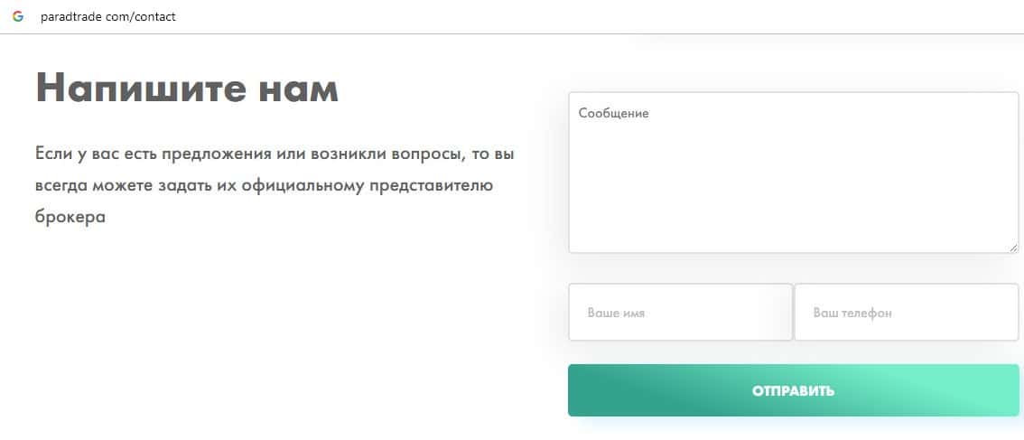 - Отсутствие технической поддержки на сайте обманщиков Парад Трейд