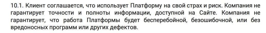 Жулики Parad Trade не дают никаких гарантий того, что торговая платформа будет работать беспрерывно и без возможных системных ошибок.