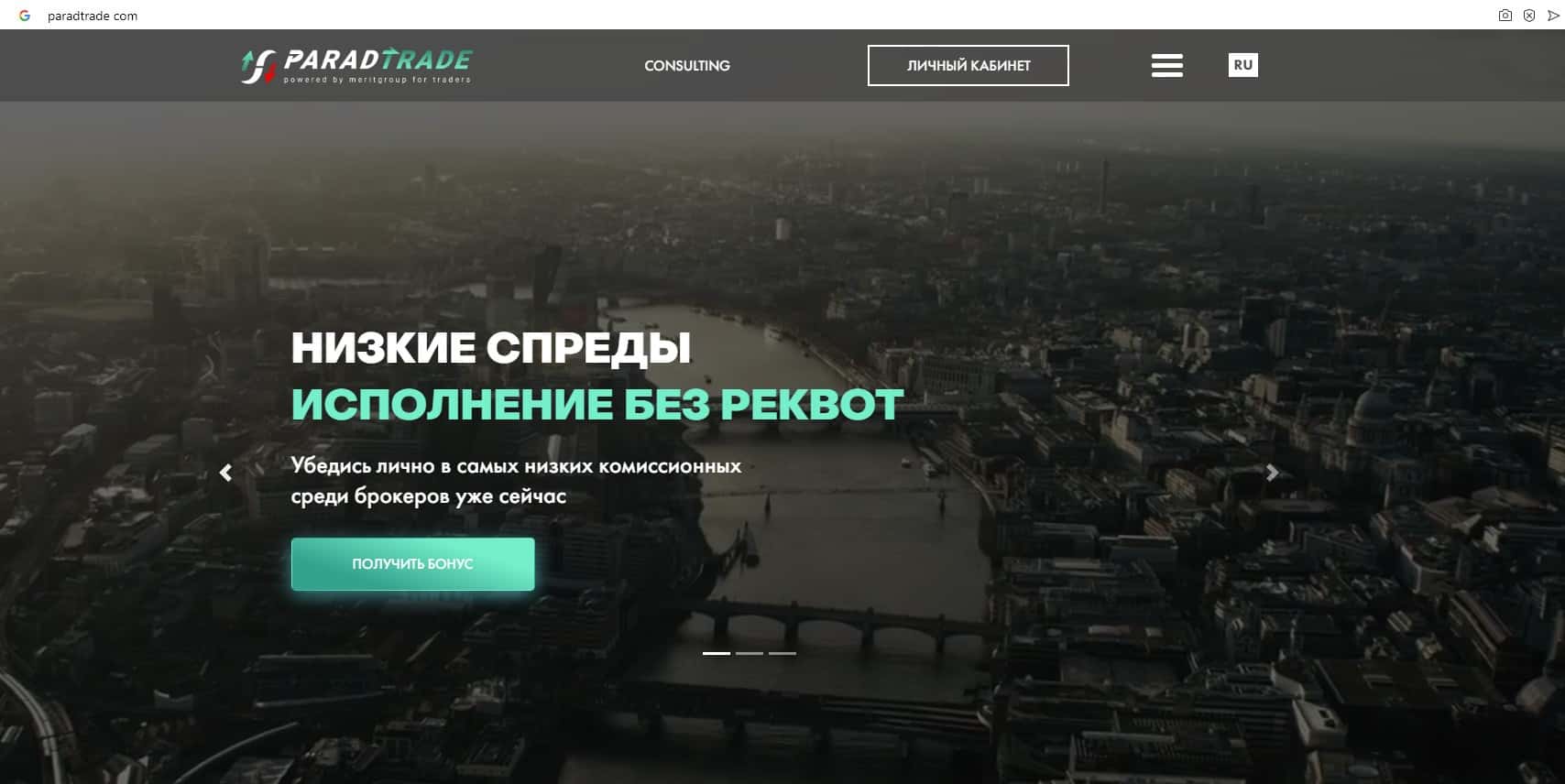- Обзор главной страницы мошеннической организации Parad Trade