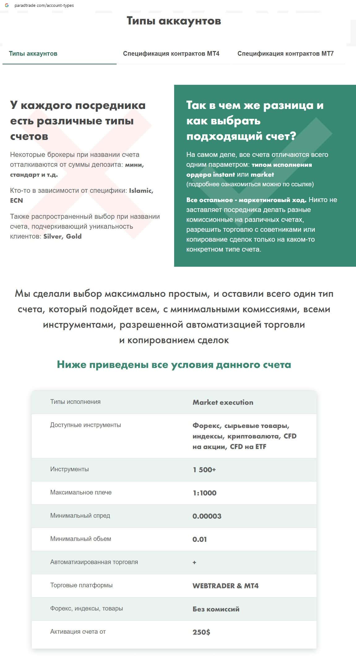 - Типы торгового счета на онлайн-сервисе мошенников Parad Trade