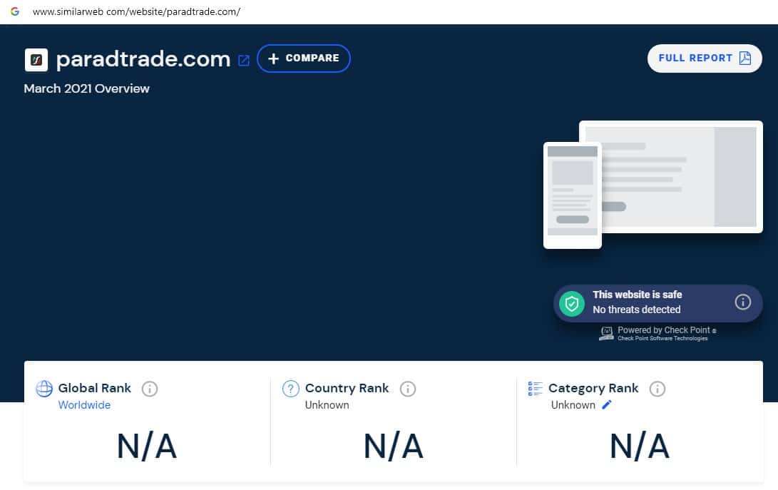 При проверке источников бренда по странам скам-компании Парад Трейд на сайте similarweb com, информация отсутствует, что является признаком Форекс-кухни.