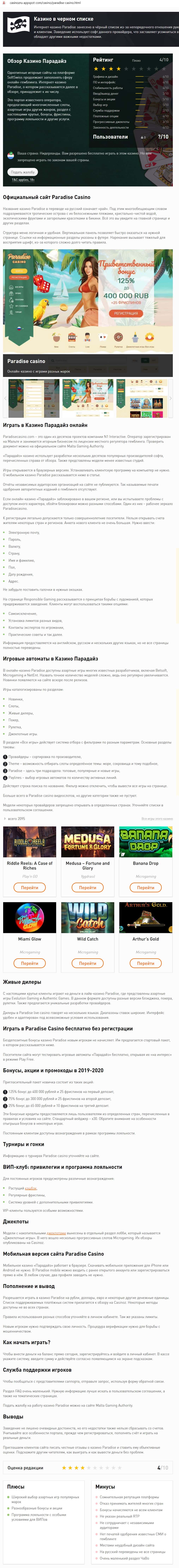 - Информация о сайте мошеннической конторы Парадайс Казино