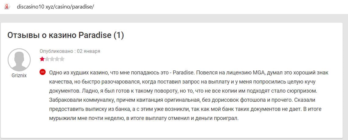 - Клиенты Парадайс Казино не доверяют ему и называют лохотроном