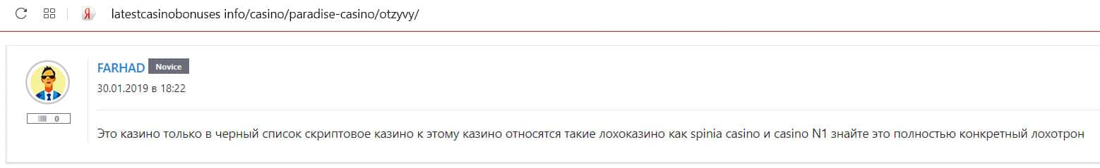 Отзывы обманутых клиентов о казино Парадайс Казино