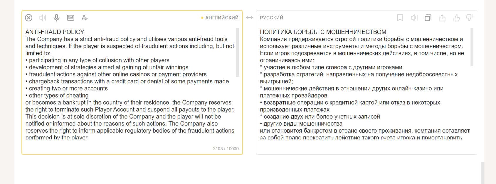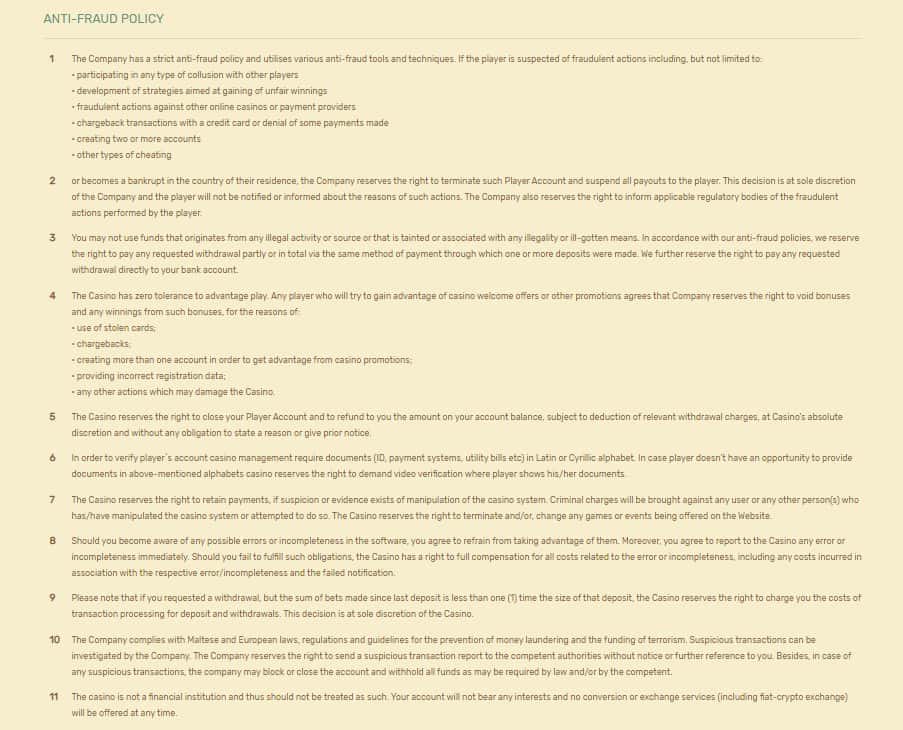 В разделе Политика борьбы с мошенничеством указано, что сайт борется с махинациями со стороны игроков и мониторит их денежные поступления.