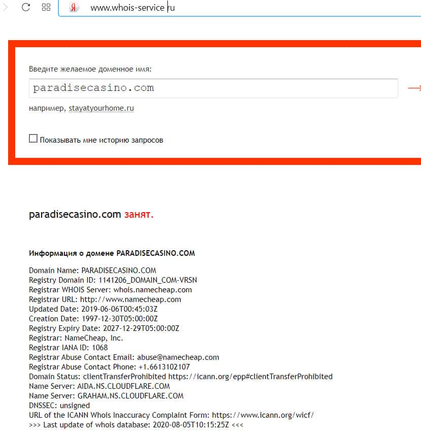 - Кому принадлежит доменное имя сайта paradisecasino com?