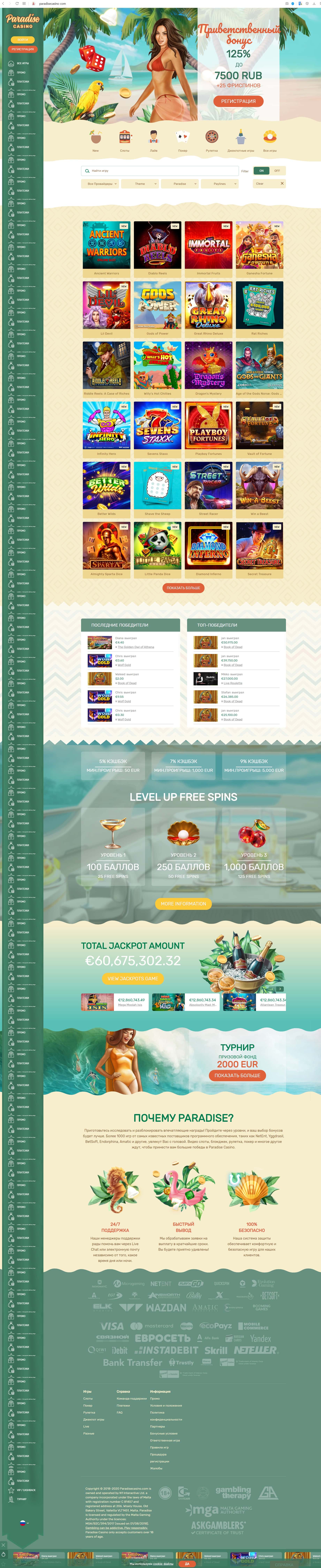 - Как выглядит главная страница он-лайн казино Парадайс Казино?