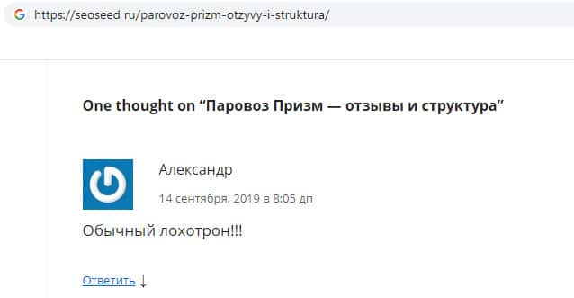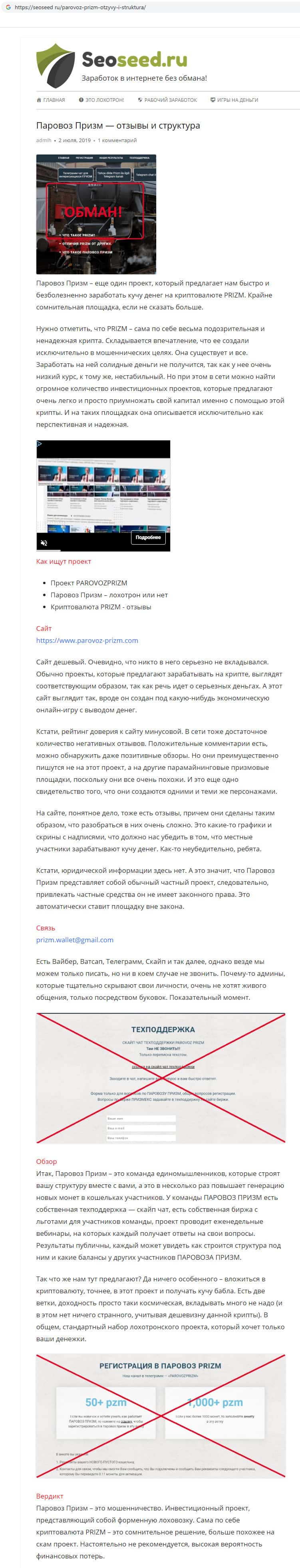 seoseed ru - сайт обозревающий аферистов Parovoz-Prizm