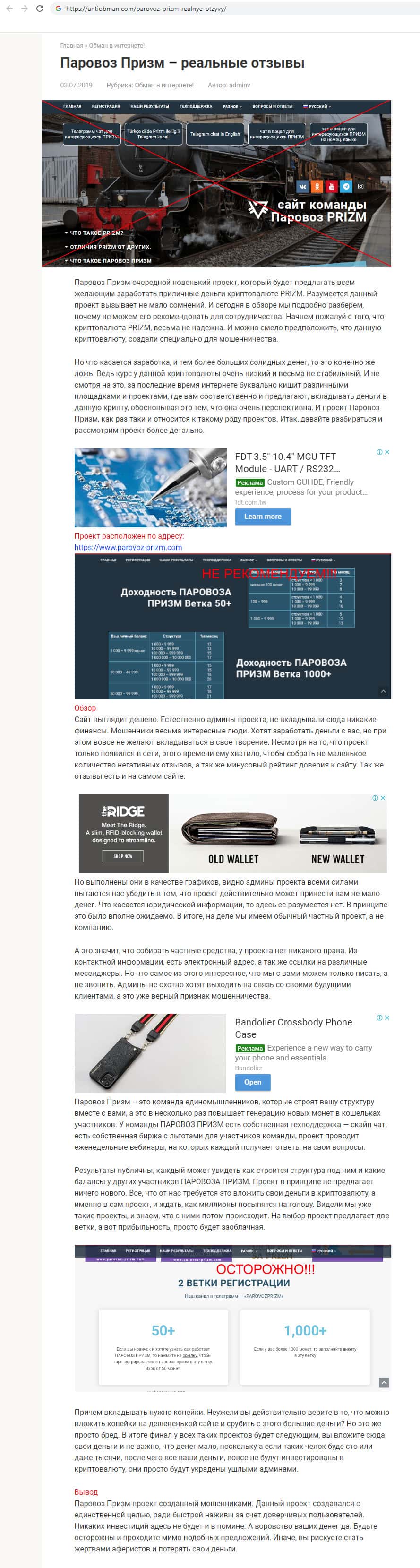 - Аферисты Паравоз Призм впаривают крипту, которую нельзя вывести