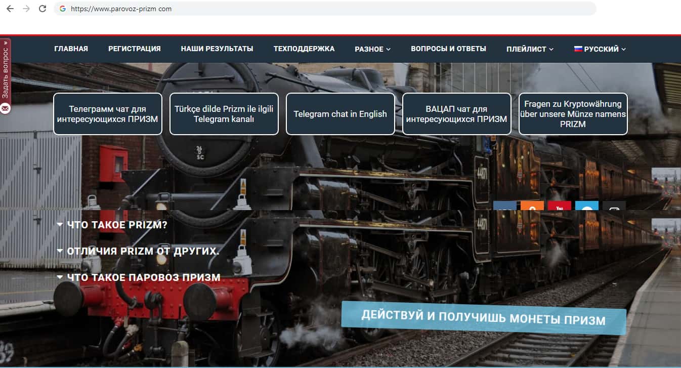 Сайт сеосид ру опубликовал обзор на мошенническую компанию Parovoz-Prizm. В нём он говорит о том, что компания является мошенниками, всё в неё создано для развода клиентов на деньги. Сама криптовалюта проекта очень сомнительна и похожа на скам. Сайт крайне не рекомендует пользователям сотрудничать с данной конторой.