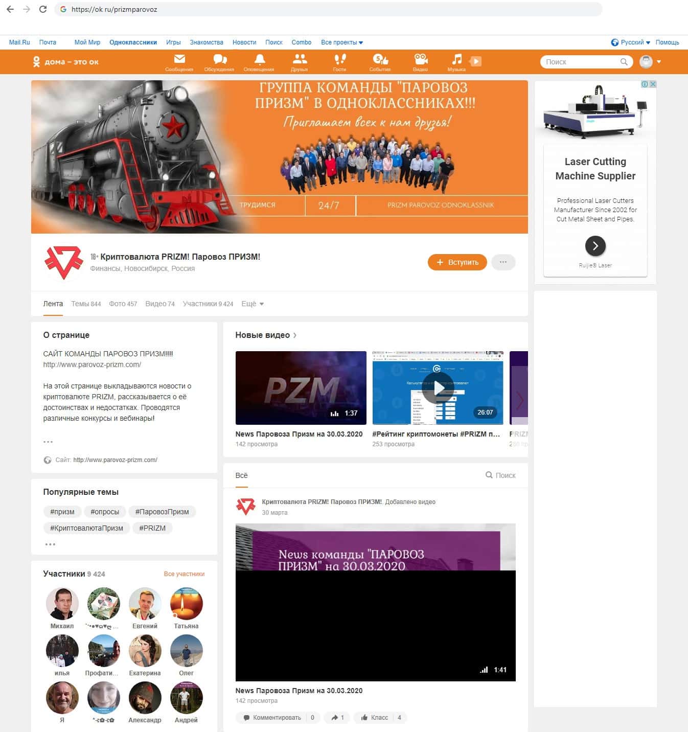На одной из популярных социальных сетей - Однокласниках, так же есть страница разводил Parovoz-Prizm. Там они собрали 9424 подписчика, что довольно много, но снова не совпадает с чатом в телеграмм, мошенники и тут накрутили подписчиков для того, что бы казаться более популярными в глазах пользователей.