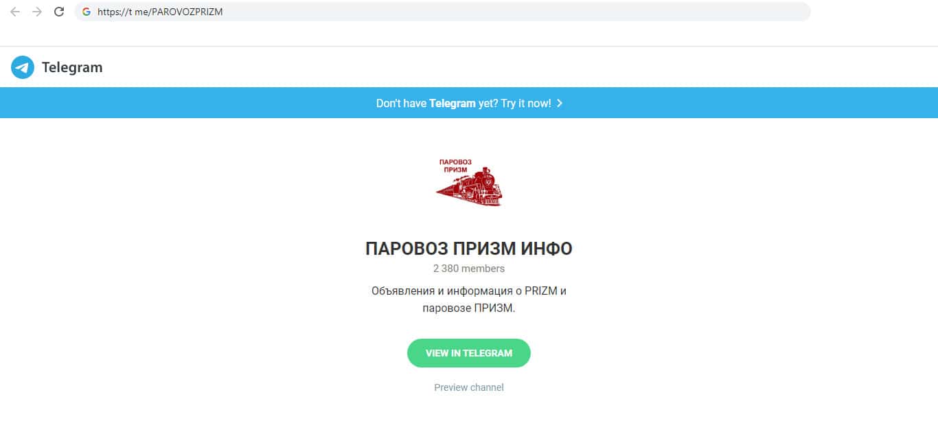 У мошенников Parovoz-Prizm есть собственная закрытая группа в телеграмм. Туда они пускают только зарегистрированных пользователей, и кто уже внёс деньги в компанию. Скорее всего там они ездят по ушам пользователям и разводят их на новую инвестицию. Группа собрала уже 2380 человек. именно столько людей повелось на этот развод.