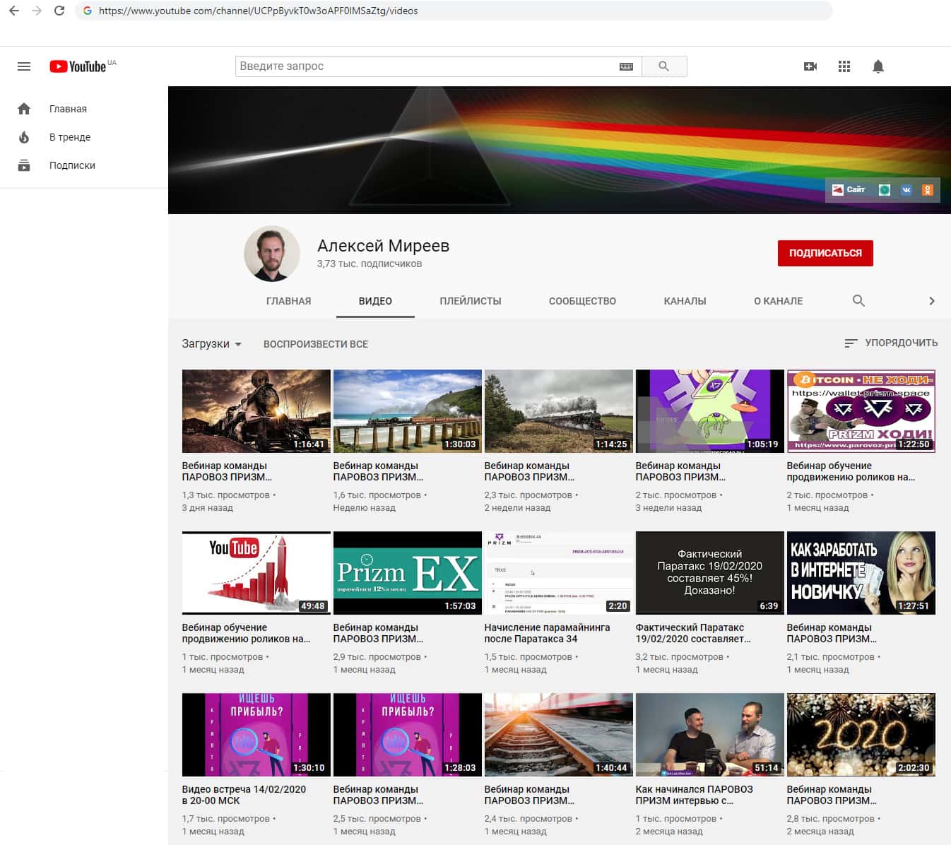 Компания лохотронщиков Паравоз Призм так же создала канал на самом известном в мире видеохостинге - ютюбе. Но там они не обрели особой популярности, о сравнению с остальными социальными сетями. Набрали более трёх с половиной тысячи подписчиков, но это так же не малое число людей, которых компания может развести.
