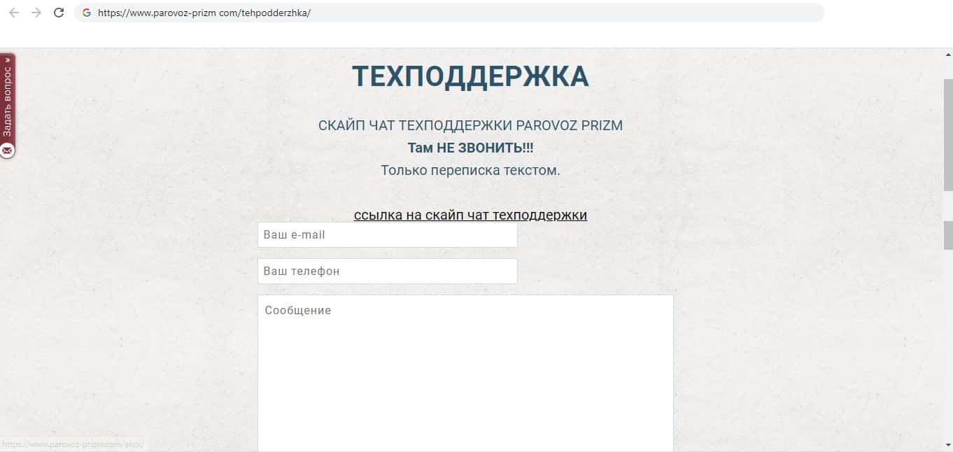 Контактная информация мошеннической организации Паравоз Призм