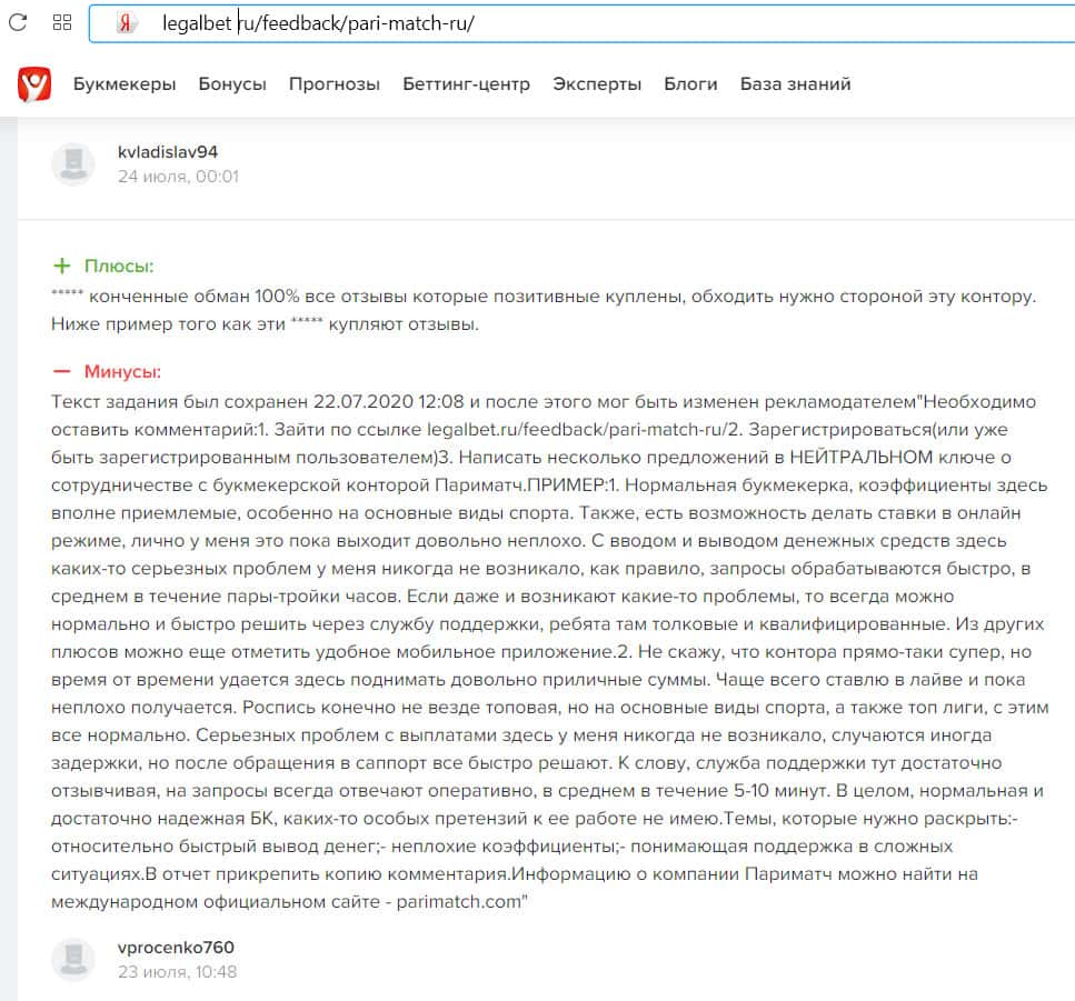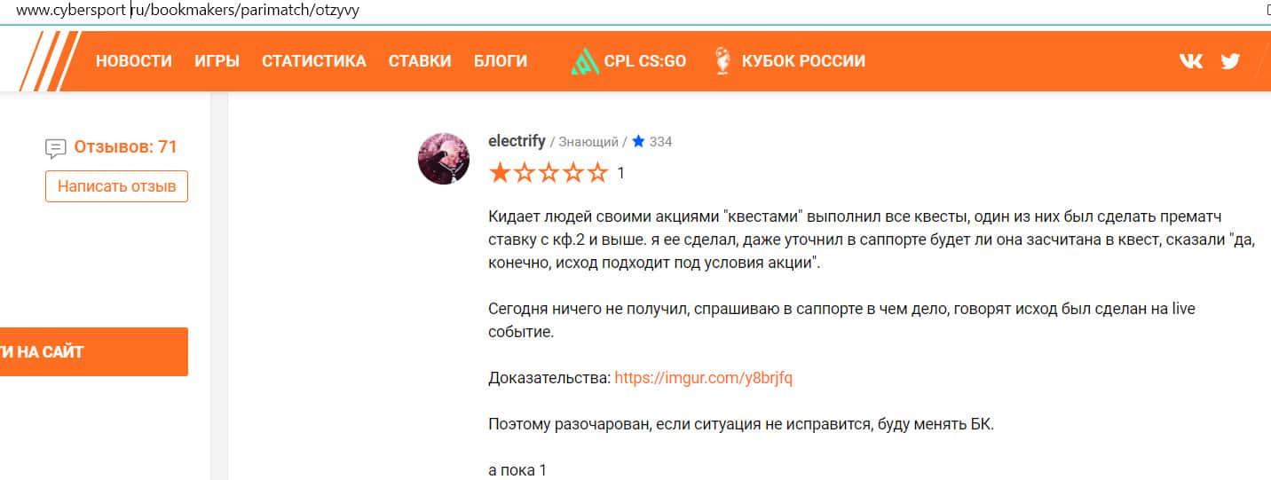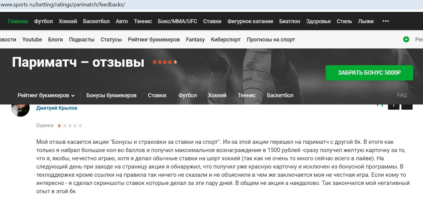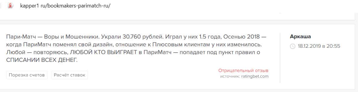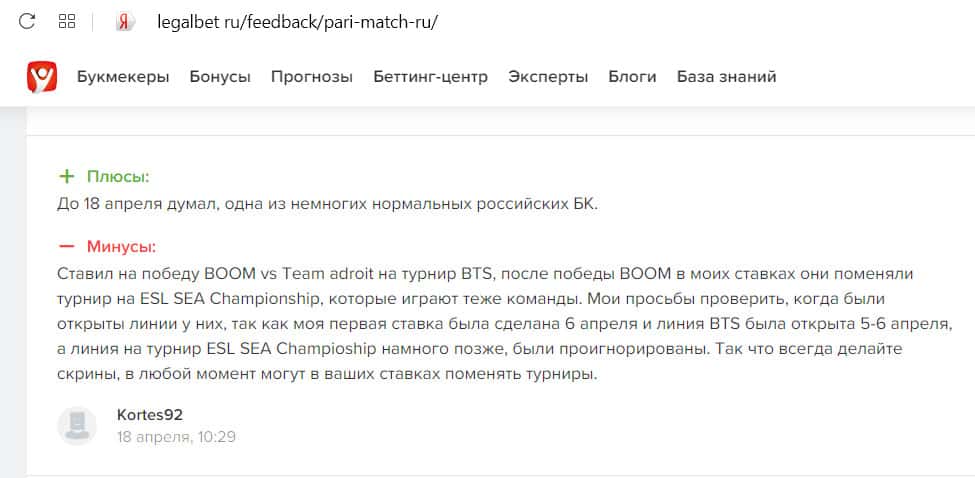 - Очередная жалоба на жульнического букмекера ПариМатч