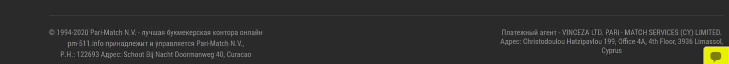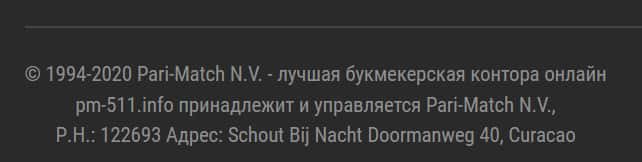 На сайте Пари Матч также дан юридический адрес офиса, который находится на острове Кюрасао.