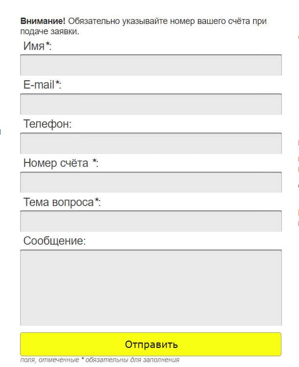 Любой желающий может заполнить форму обратной связи, чтобы задать свой вопрос букмекеру. Для этого надо написать свои данные, электронную почту, телефон.