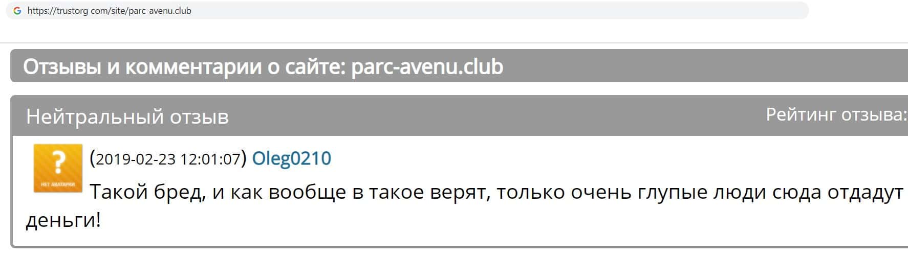 - Мнение интернет ресурсов о фирме аферистов Parc-Avenu Club