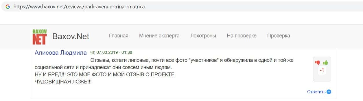 baxov net - сайт с отзывами о проекте аферистов Parc-Avenu Club