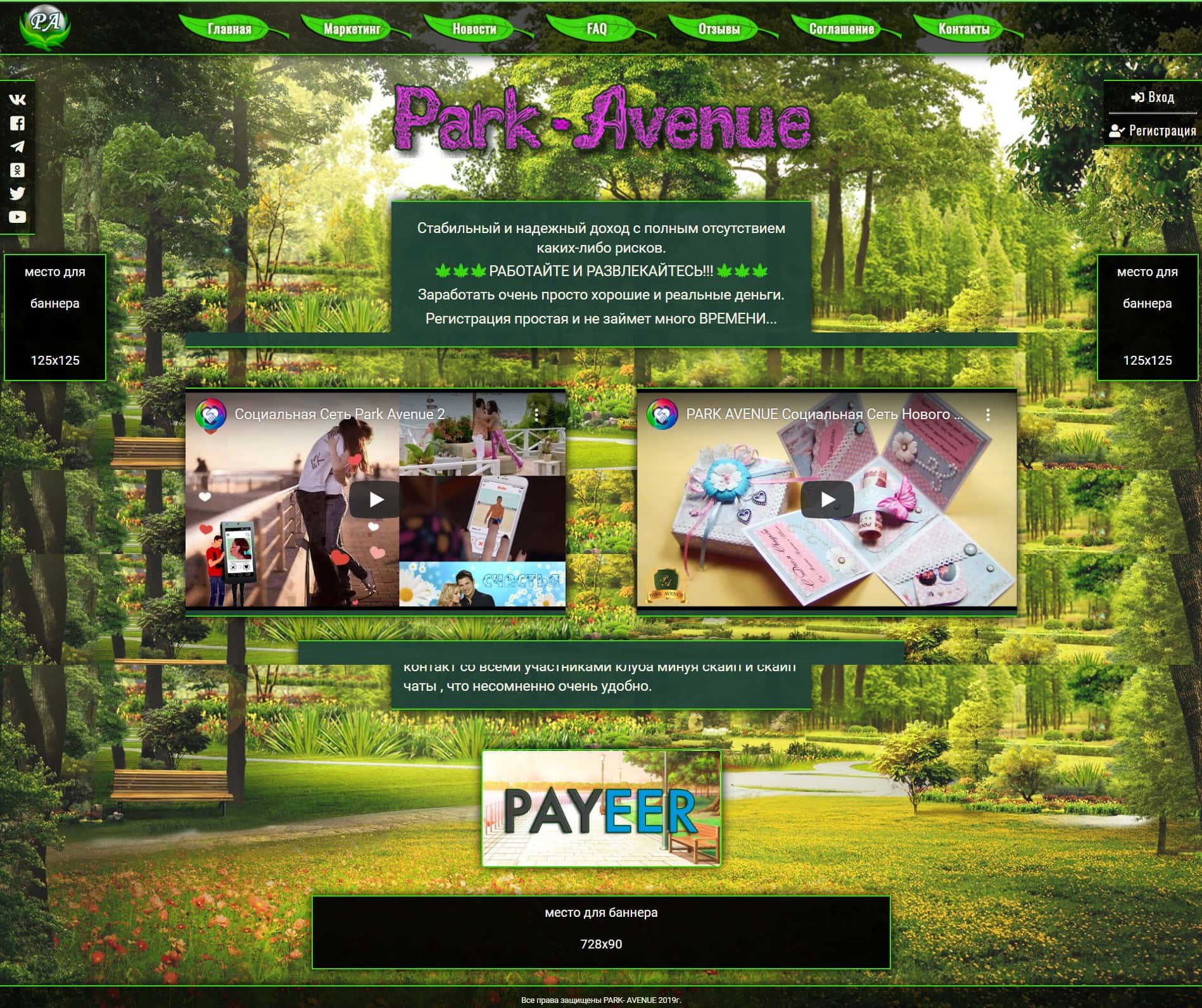 Внешний вид главного интернет ресурса лохотронщиков Parc-Avenu Club