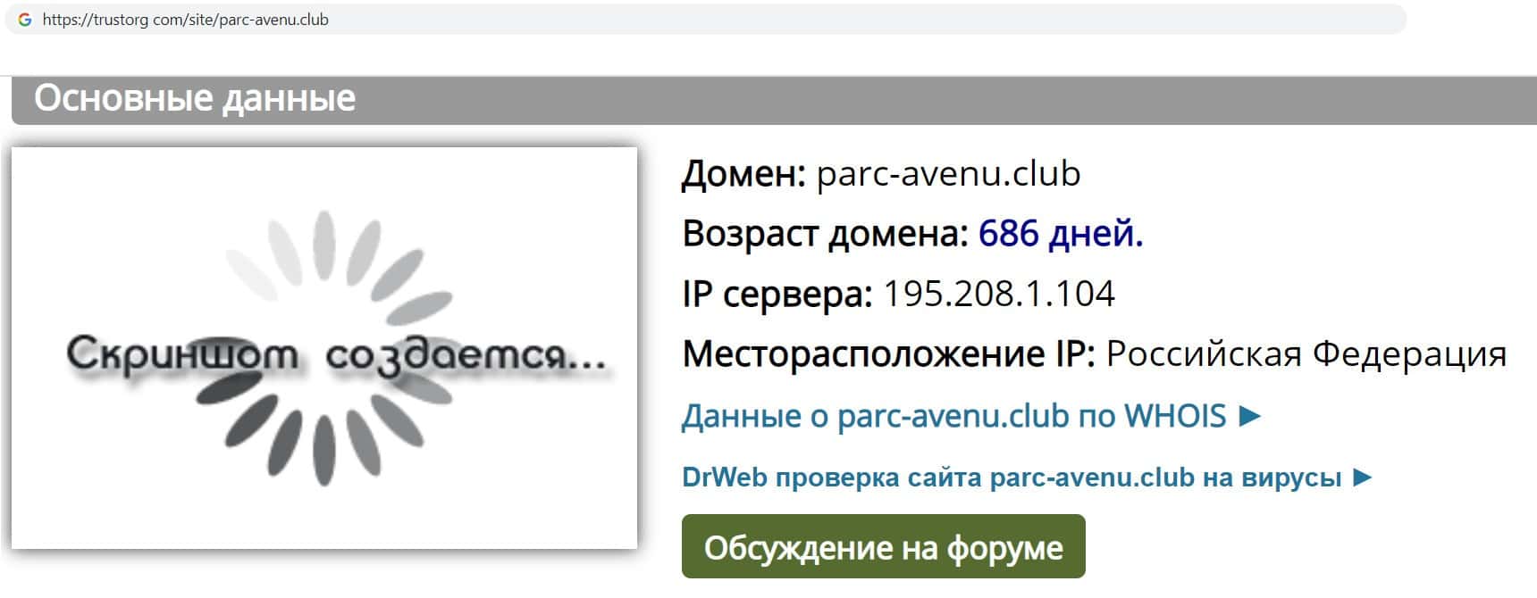 Мы проверили возраст компании кидал Парк Авеню Клуб используя сайт "Доверие в Сети". И оказалось, что компании аферистов Парк Авеню Клуб нет и двух лет.
