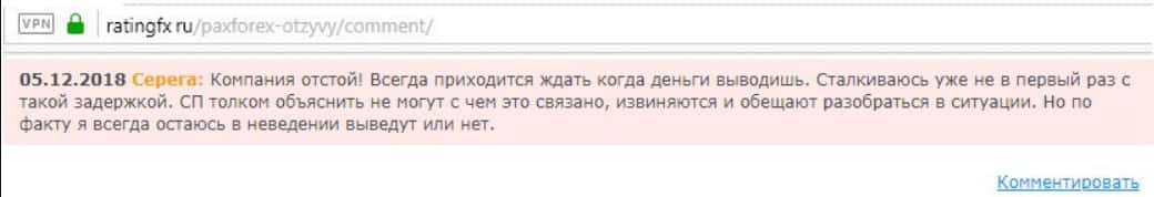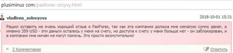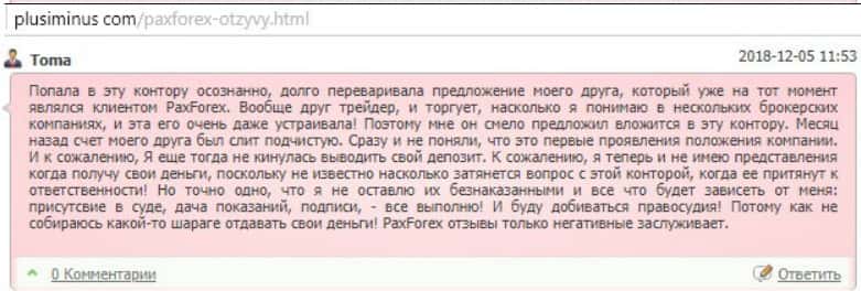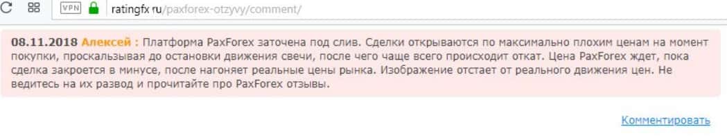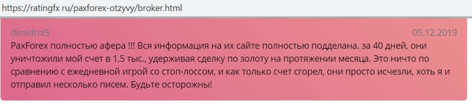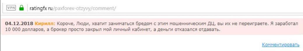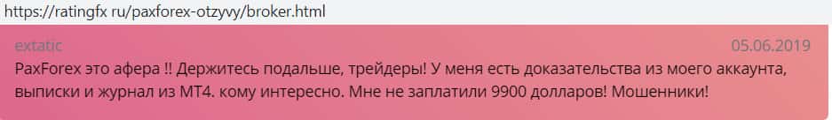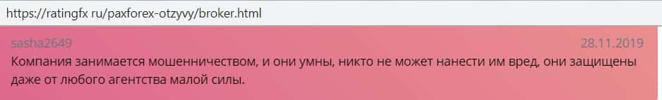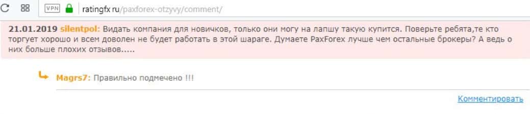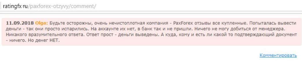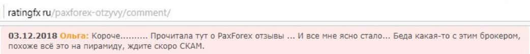 Еще несколько правдивых отзывов о мошеннической деятельности ДЦ PaxForex нам удалось найти на интернет-портале ratingfx ru. Прочитав эти отзывы все сразу стало понятно.