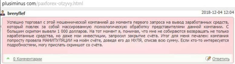 - Аферисты ПаксФорекс опрокинули клиента на 1500 американских долларов