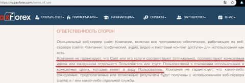 А теперь по поводу гарантии от компании PaxForex. Мошенники не гарантируют, что сайт или его услуги соответствую конкретным идеям или ожиданиям отдельного Пользователя или групп пользователей. То есть в этой катавасии указано, что они не отвечают за то что написано у них на сайте, а также в любой момент могут изменить информацию без ведома клиента. При чем это все может повлиять на условия торговли, этот договор и прочие важные моменты. Однажды клиент может остаться голый и босой.