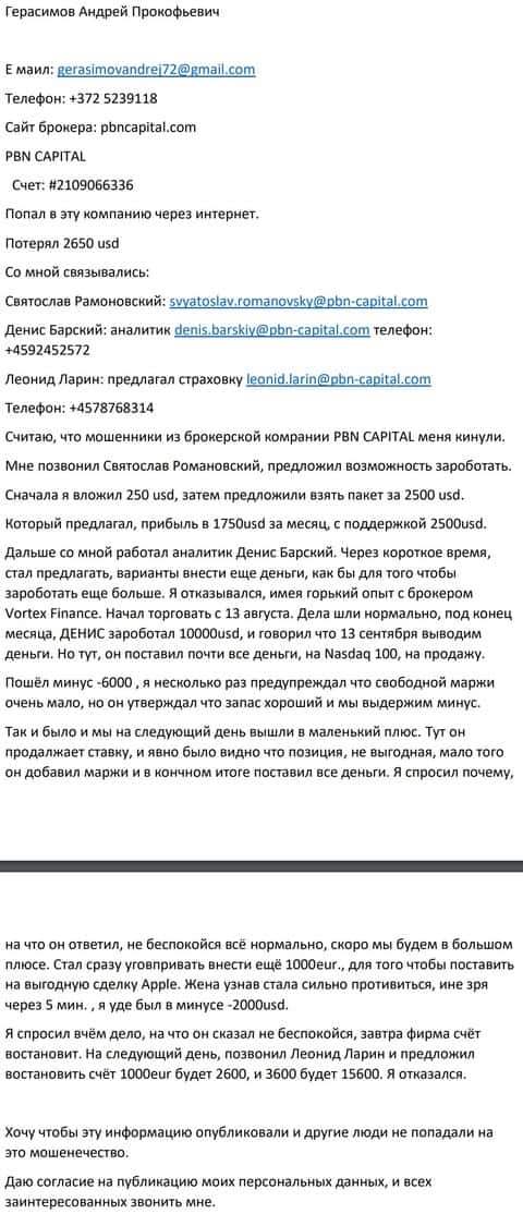 - Еще одна жалоба на аферистов PBN Capital - клиент потерял более 2000$