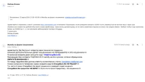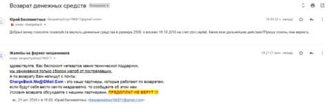 Автор этого письма обратилась на веб-сайт ChargeBack.Me дабы ей помогли вернуть украденные 250 долларов. Это сделала мошенническая кухня ПБН Капитал, которая отказывается это признавать и теперь считает, что перечисленные деньги это их собственность. После последнего разговора аферисты вообще перестали выходить на связь, хотя до этого звонили практически каждый день.