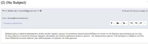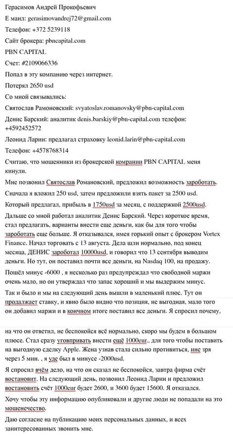 Еще одна жалоба на аферистов PBN Capital - клиент потерял более 2000$