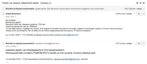 Обычная схема, обычный итог - ничего нового из этого письма для себя читатель не узнает. Началось все со звонка звонаря конторы PBN Capital, который заставил вложить 250 долларов на счет, но потом заманили каким-то супер-пакетом для инвестиционных возможностей, который стоил 2500 долларов и приносить он будет 1750 долларов в месяц. Потом клиента обрабатывал аналитик и постоянно просил вложить больше денег. Но жертва кидалова, был тертым калачем, так как до этого его уже раз опрокинули шулера Vortex Finance, и отказывался от таких предложений. Итак на счету горела сумма в 10 000 долларов и жулик сообщил, что можно делать запрос на вывод части денег, а сам открыл сделку, которая чуть не угробила весь счет. Но все-таки сраналитику удалось это сделать и после инцидента позвонил Ларин и сообщил о возможности восстановления счета, если пополнить на 1000 евро счет. Хорошо, что у жены клиента была голова, а то бы вляпался еще раз!