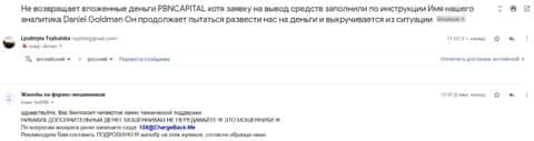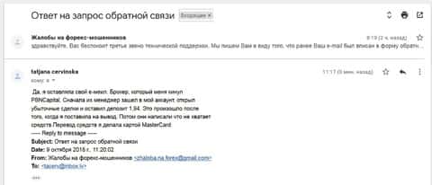 В данном случае мошенническая контора ПБН Капитал удерживает и не возвращает вложенные средства одного из клиентов, который доверился уговорам аналитиков и подписал с ними договор. Он переводил деньги частями и, когда шарлатаны поняли, что денег больше не получат, то сразу же заблокировали счет.