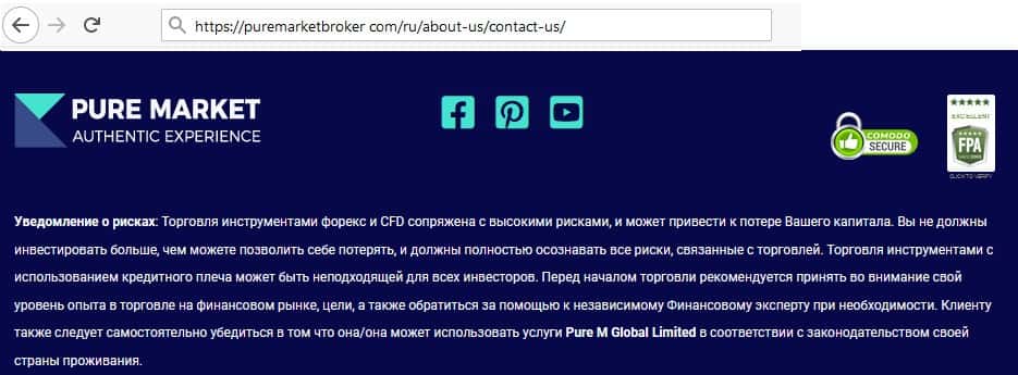 Однако вариант "PureMarket broker", где имеется приставка, указывающая на то, что контора причастна к брокерской деятельности трейдерами не использовалась.