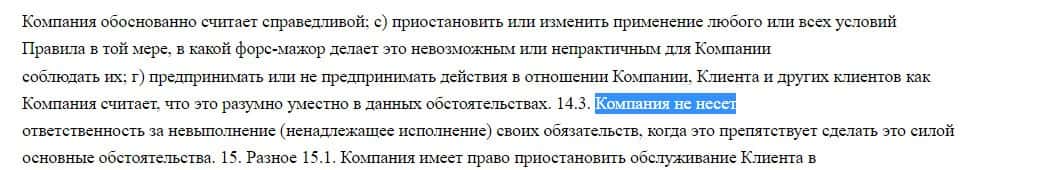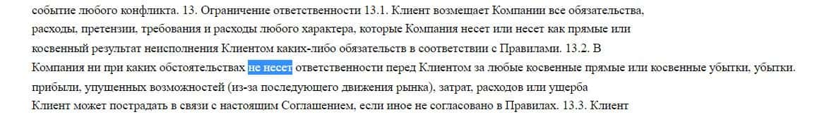И очередная подстава для клиента жульнической форекс-организации Пуре Маркет следует в далее опубликованном пункте мошеннического договора.