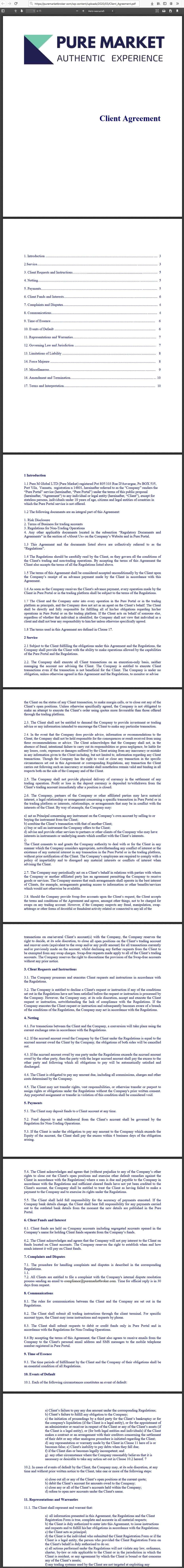В данном разделе предлагаем ознакомится с ловушками клиентского договора мошеннической компании PureMarket.