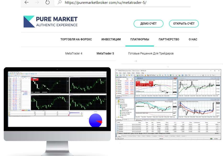 PureMarket - очередной брокер-самозванец, заманивающий клиентов обещаниями поторговать на stp-счетах, а на деле нагло обворовывающий своих клиентов с помощью платформ МетаТрейдер 4 и МетаТрейдер 5, созданных жуликами-разработчиками MetaQuotes. Опытные трейдеры на все это не купятся, а новичкам нужно обходить его десятой дорогой.