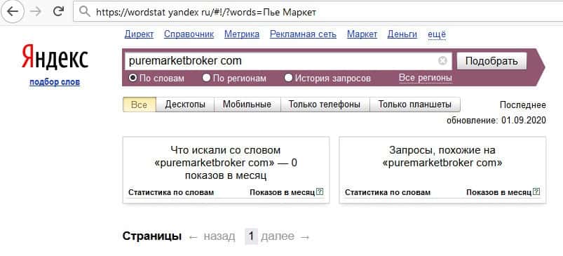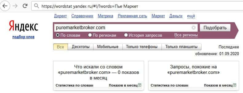 Полное название домена с точкой в виде "puremarketbroker.com", выяснится, что пользователям Яндекса оно тоже не нужно.