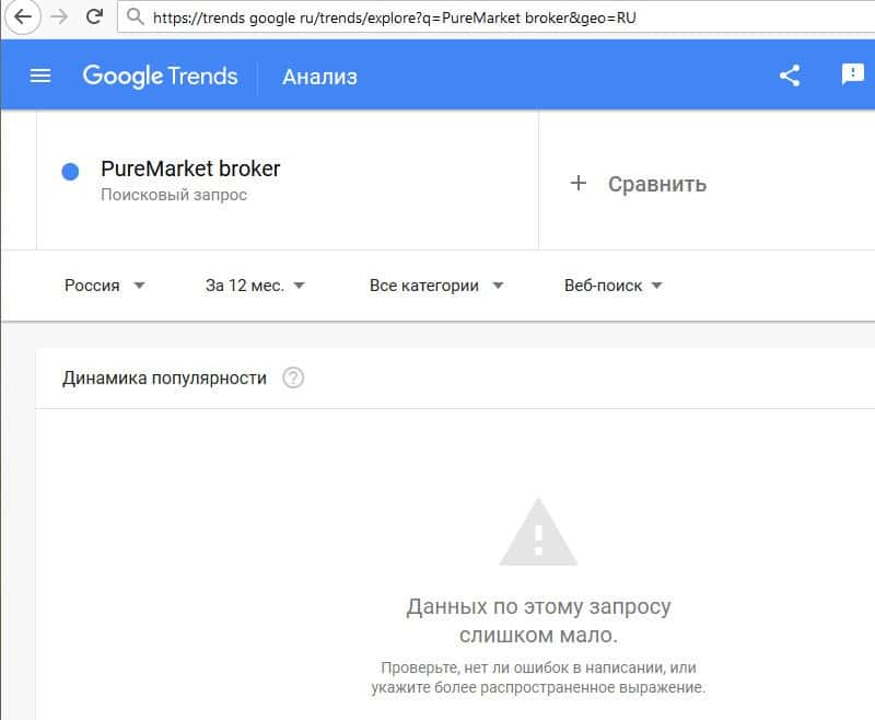 Ели указать, что перед вами брокер "PureMarket broker", окажется, что этого имени трейдеры не знают.