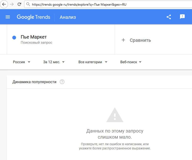 Количество запросов о конторе Пье Маркет в поисковике Гугл